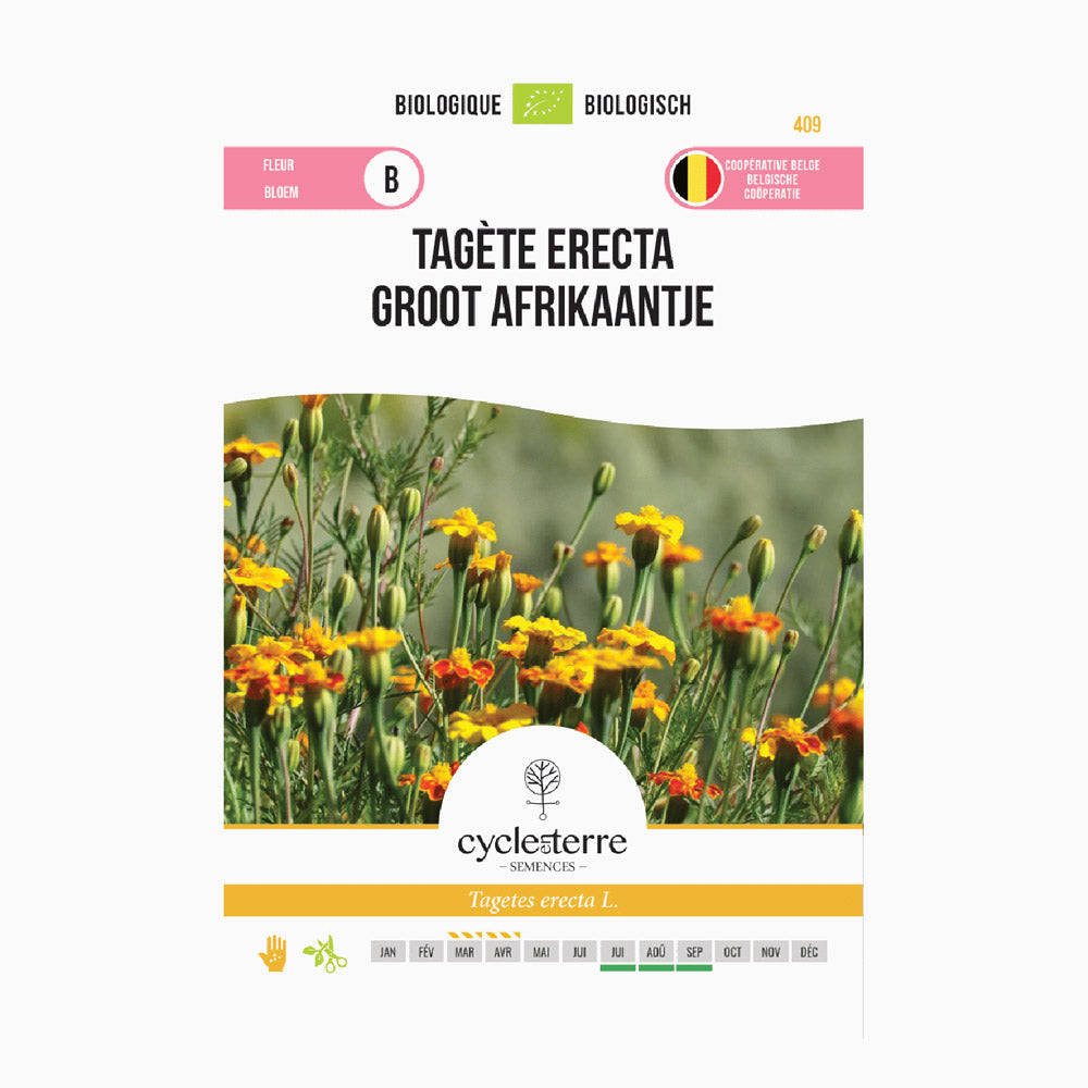 I fiori arancioni del Grande Tagete fioriscono fino a tarda stagione, rendendo questa pianta ideale per giardini soleggiati. Raggiunge 80 cm di altezza e può essere seminata da metà marzo ad aprile, in un luogo riparato e protetto dal freddo. I semi richiedono una temperatura di germinazione da 20 a 30°C e germinano entro 5-14 giorni. Dopo metà maggio si possono trapiantare le giovani piante, mantenendo una distanza di 30 x 30 cm. Utilizzi un terreno ben drenante per una crescita ottimale. Questa pianta non solo ravviva il giardino con i suoi splendidi fiori, ma contribuisce anche a una struttura del suolo più sana!