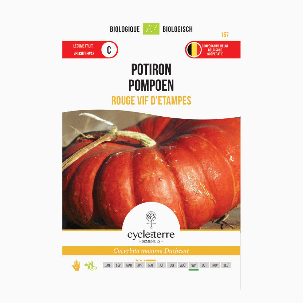 Questa coltura è relativamente facile da coltivare, con semina da metà aprile a una profondità di 2-3 cm in un luogo caldo. Successivamente è possibile trapiantare le giovani piante da metà maggio in piena terra a una distanza di 1,2 x 0,5 - 1 metro. È anche possibile seminare la zucca direttamente in piena terra a partire dal 15 maggio. La pianta ha bisogno di molto spazio per crescere bene, quindi scegliete una posizione soleggiata. La “Rode Vif d'Étampes” ha una stagione di crescita di circa 110 giorni ed è pronta per la raccolta da settembre.