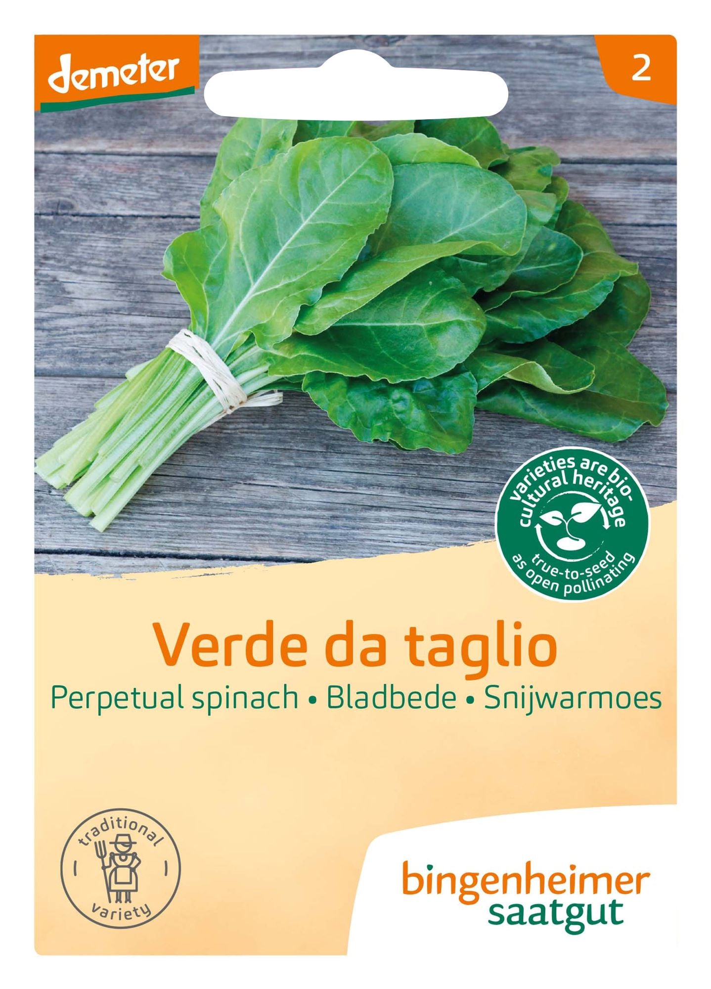 Verde da Taglio, spesso indicato come Perpetual Spinach, è una bietola da taglio versatile, con foglie larghe di un verde brillante e coste tenere. Nell’aspetto ricorda gli spinaci, ma l’habitus di crescita e la foglia sono più ampi e produttivi. Le foglie hanno un sapore delicato e succoso e si prestano ottimamente sia a preparazioni crude sia cotte.