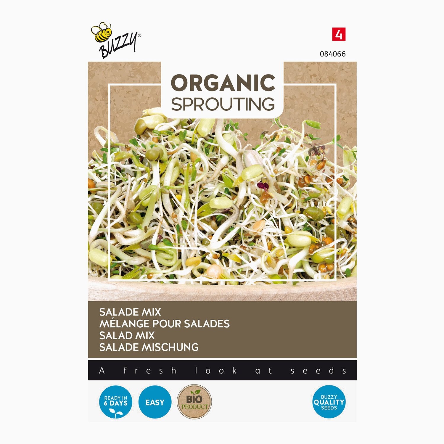 Sprouting Salademengsel is een heerlijke mix, bestaande uit Taugé (Mung Beans), Alfalfa, Linzen, Fenegriek en gele Mosterd. Deze veelzijdige combinatie biedt niet alleen een aantrekkelijke textuur, maar zit ook boordevol vitaminen en mineralen die essentieel zijn voor een gezonde voeding.