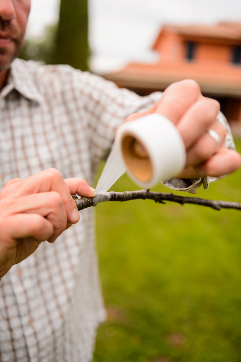 Per: Legare, fissare steli o rami delle piante, innestare rami