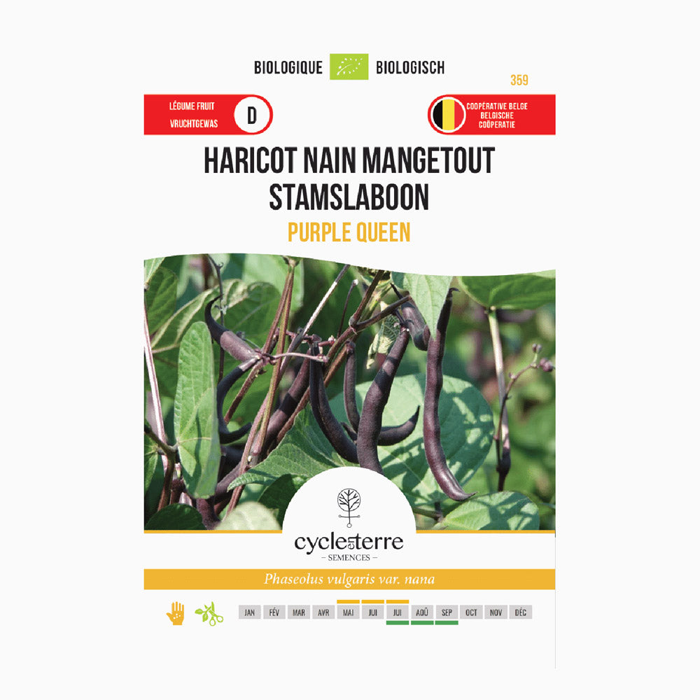 Il fagiolino nano ‘Purple Queen’ ha un particolare colore viola intenso. Nei Paesi Bassi questa varietà è conosciuta anche come “fagiolino viola”. È un fagiolino senza fili, con baccelli lunghi da 15 a 20 cm e dal sapore delicato. Curiosità: durante la cottura il colore viola del fagiolino cambia in un verde brillante, creando un effetto sorprendente nel piatto.