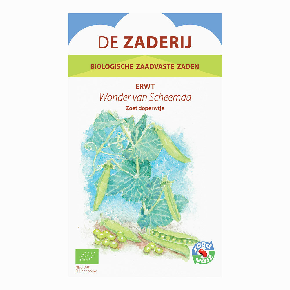 Het Wonder van Scheemda è un classico pisello da sgranare biologico con una ricca storia e un gusto eccellente. Questa varietà della regione di Groninga è stata sviluppata all’inizio del secolo scorso dall’azienda sementiera Zwaan & De Wiljes a Scheemda e da allora è diventata una varietà affidabile e molto apprezzata per l’orto. Le piante raggiungono circa sessanta-settanta centimetri di altezza e producono baccelli ben pieni, verde scuro, con piselli dolci e teneri.