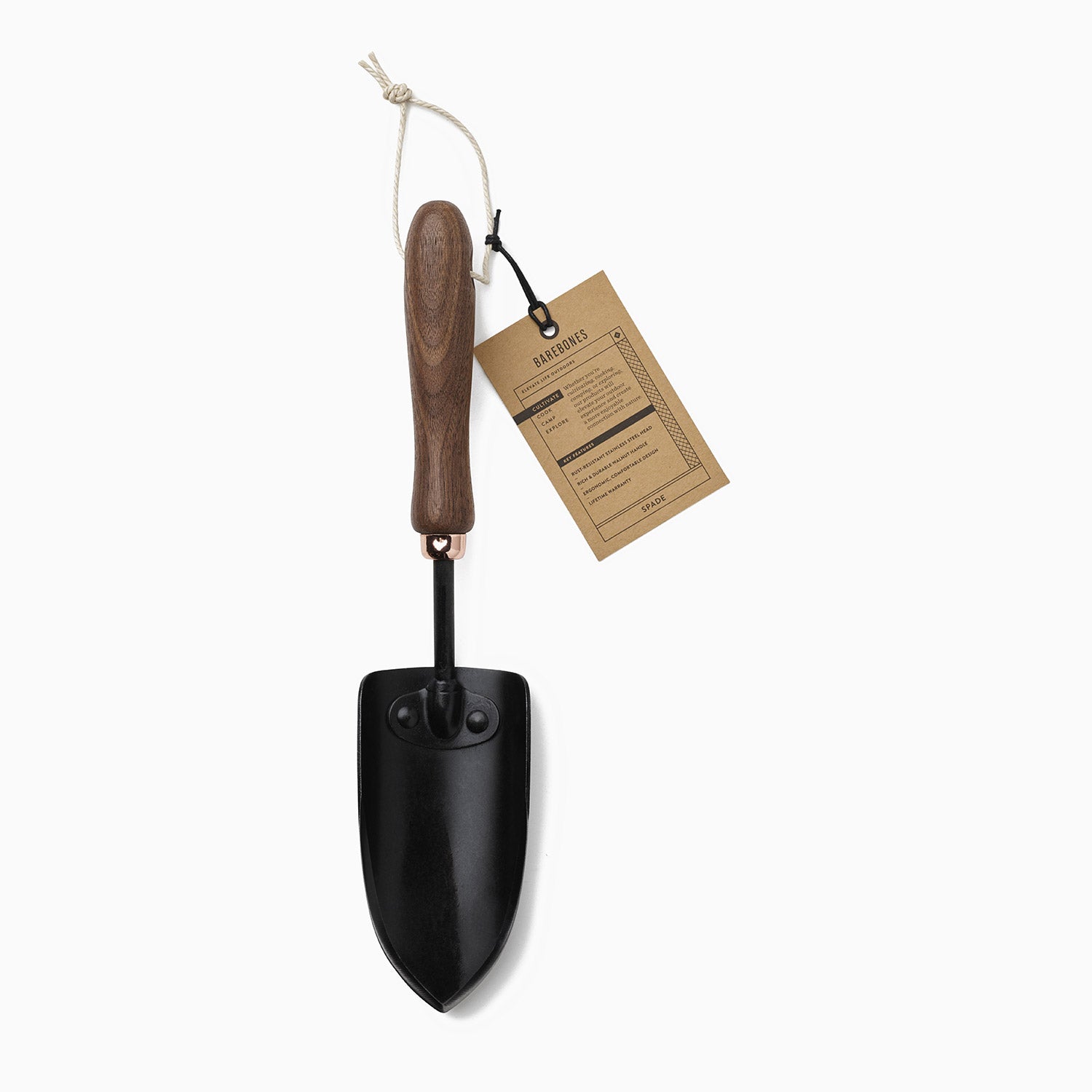 Questa paletta manuale Barebones fa parte dell’assortimento di base di ogni orticoltore attento allo stile. Il legno di noce con finitura in rame e una robusta lama in acciaio temprato termicamente rendono questo utensile manuale un pezzo davvero splendido.