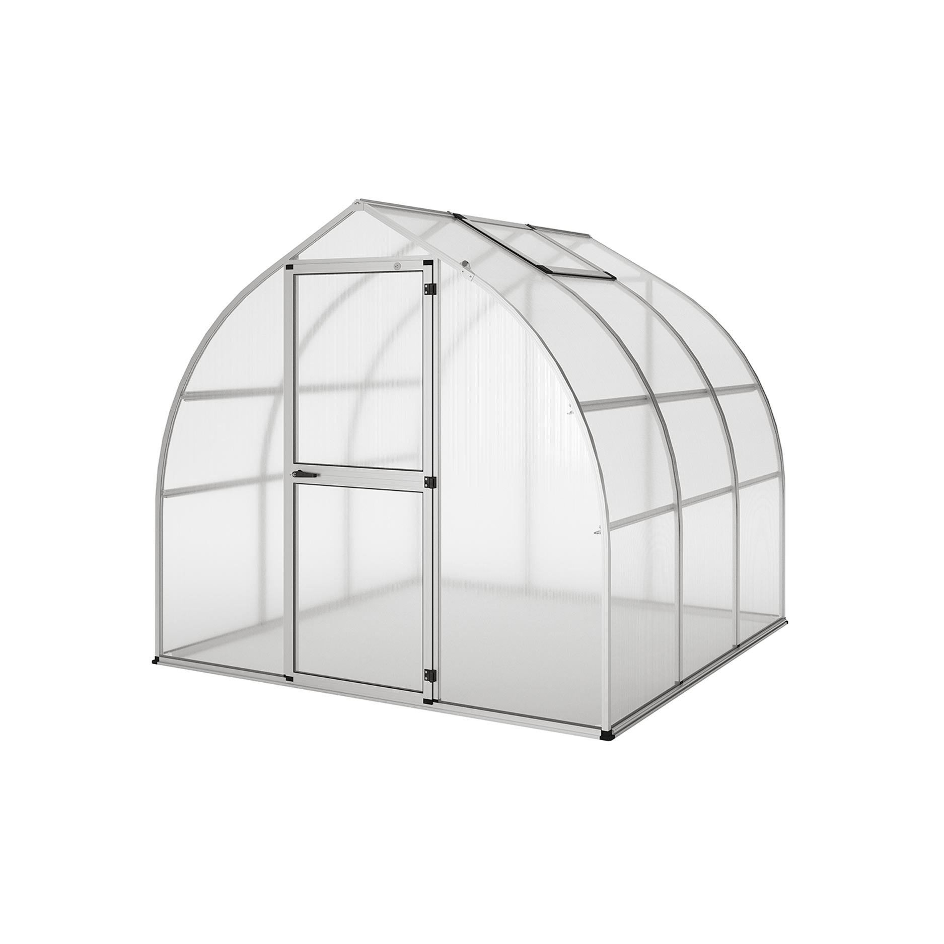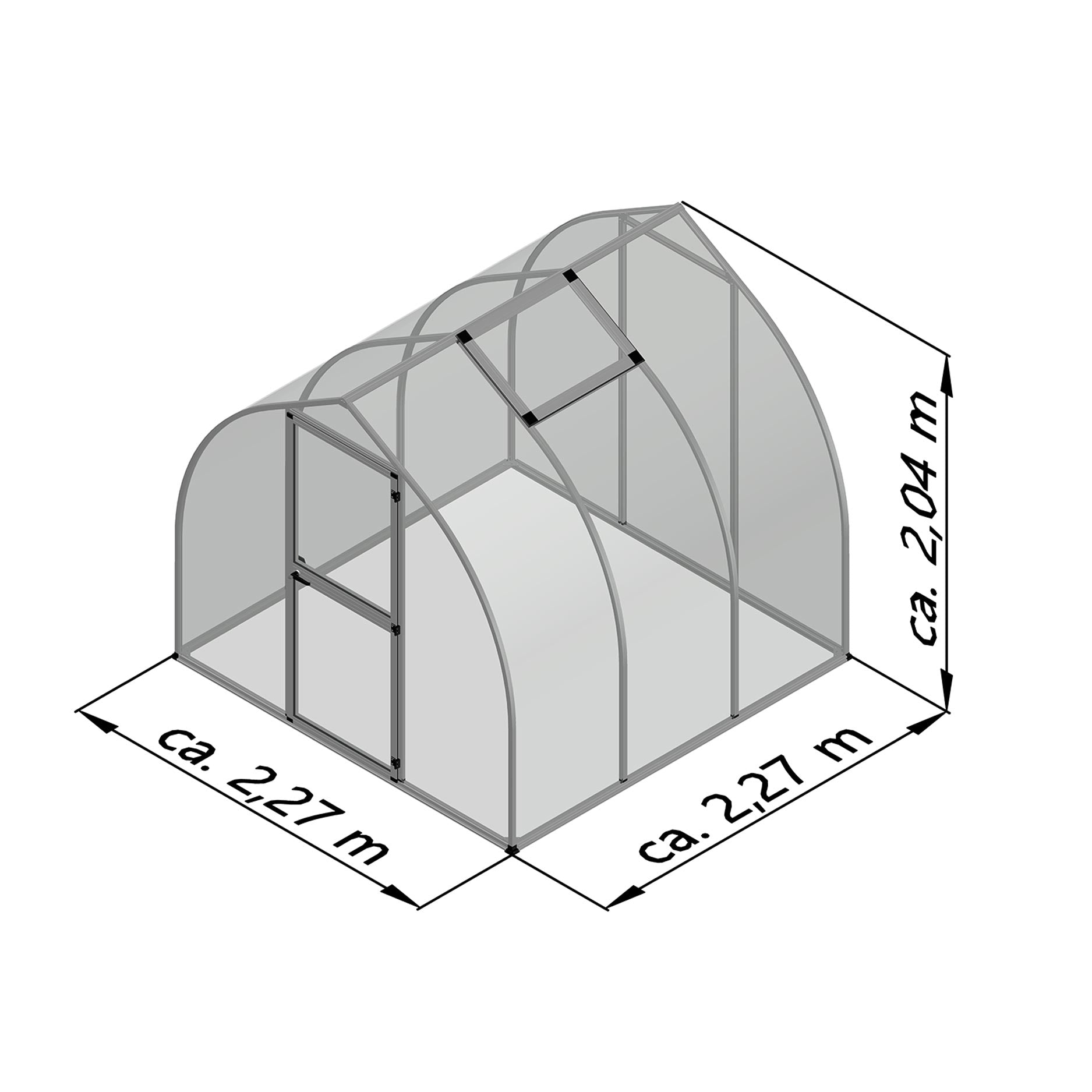 La struttura è composta da una solida base in alluminio con pannelli alveolari da 6 mm che trattengono il calore, sono protetti dai raggi UV e resistono alle condizioni meteo variabili. La linea del tetto arrotondata evita l’accumulo d’acqua e il carico della neve, prolungando notevolmente la durata nel tempo. La porta a battente tipo stalla garantisce un accesso comodo con vasi, cassette o vassoi. Può essere tenuta aperta grazie a un robusto magnete. Inoltre, la finestra da tetto integrata rende semplice la gestione del clima. Per chi desidera ulteriore stabilità, è disponibile il telaio di fondazione, che facilita il montaggio su qualsiasi superficie.