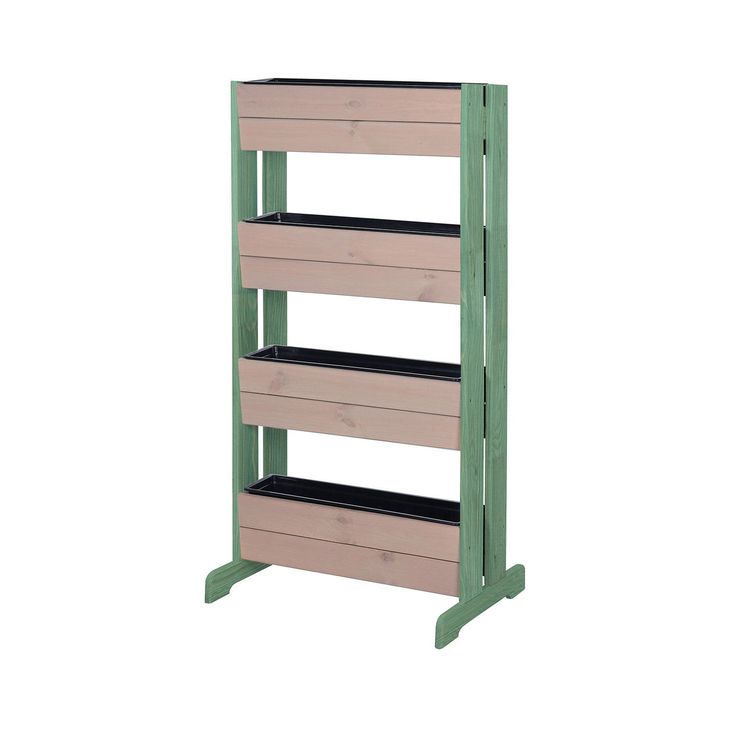 Ideale per balconi o giardini di piccole dimensioni. Questo elegante giardino verticale a 4 livelli occupa poco spazio, ma può ospitare molte piante. Nelle vasche può coltivare facilmente erbe aromatiche o fragole, ma naturalmente può anche riempirle in modo decorativo con piante ricadenti.