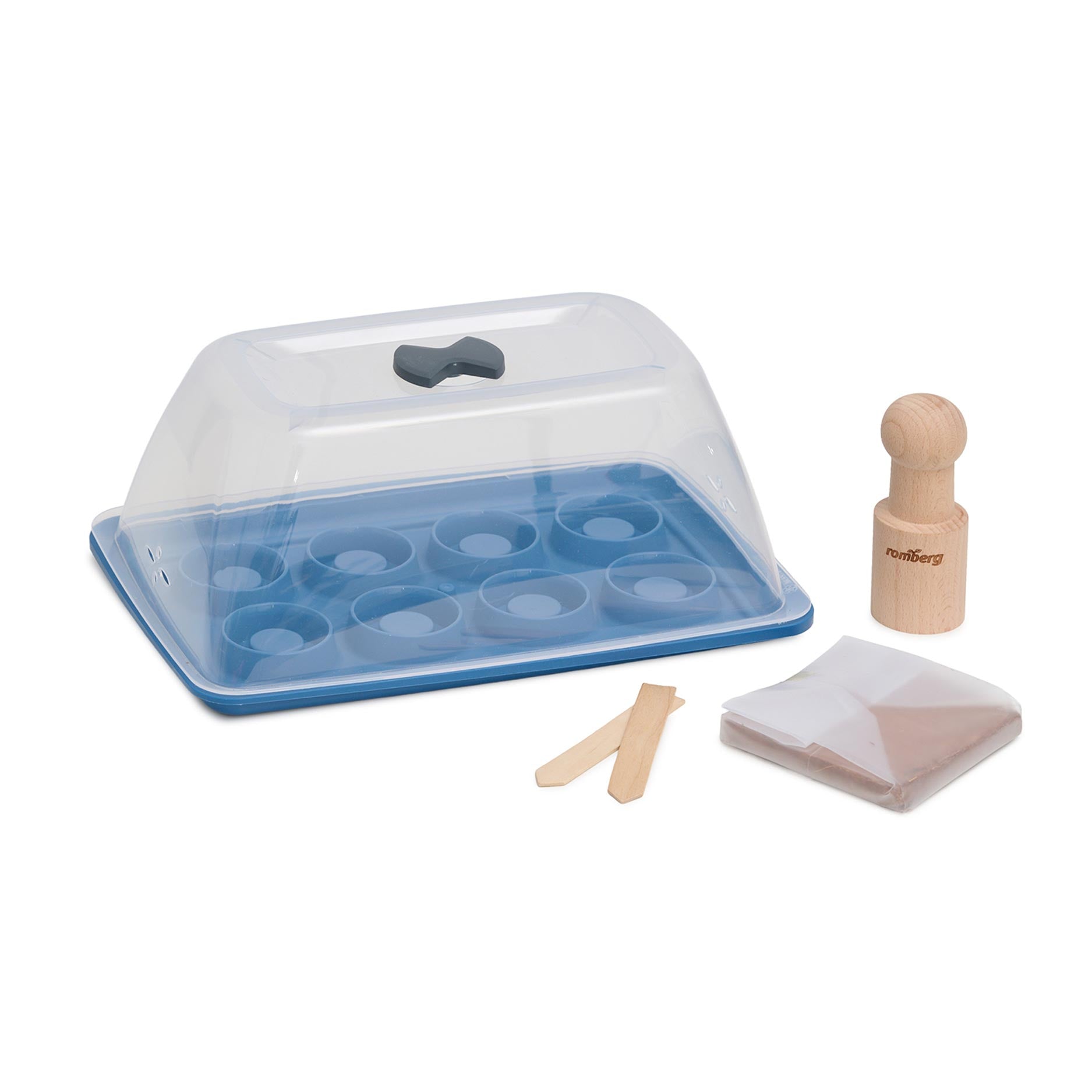 Il Set di Coltivazione Starters è un kit completo per chiunque voglia seminare e coltivare piante facilmente in autonomia. Il set comprende un robusto vassoio di base, una copertura trasparente con ventilazione regolabile, una pressa in legno per carta per realizzare vasetti con carta di giornale e terriccio di cocco senza torba. Il design è pensato per l’uso in ambienti interni, sul davanzale o sul balcone. Offre tutto il necessario per iniziare subito a seminare.