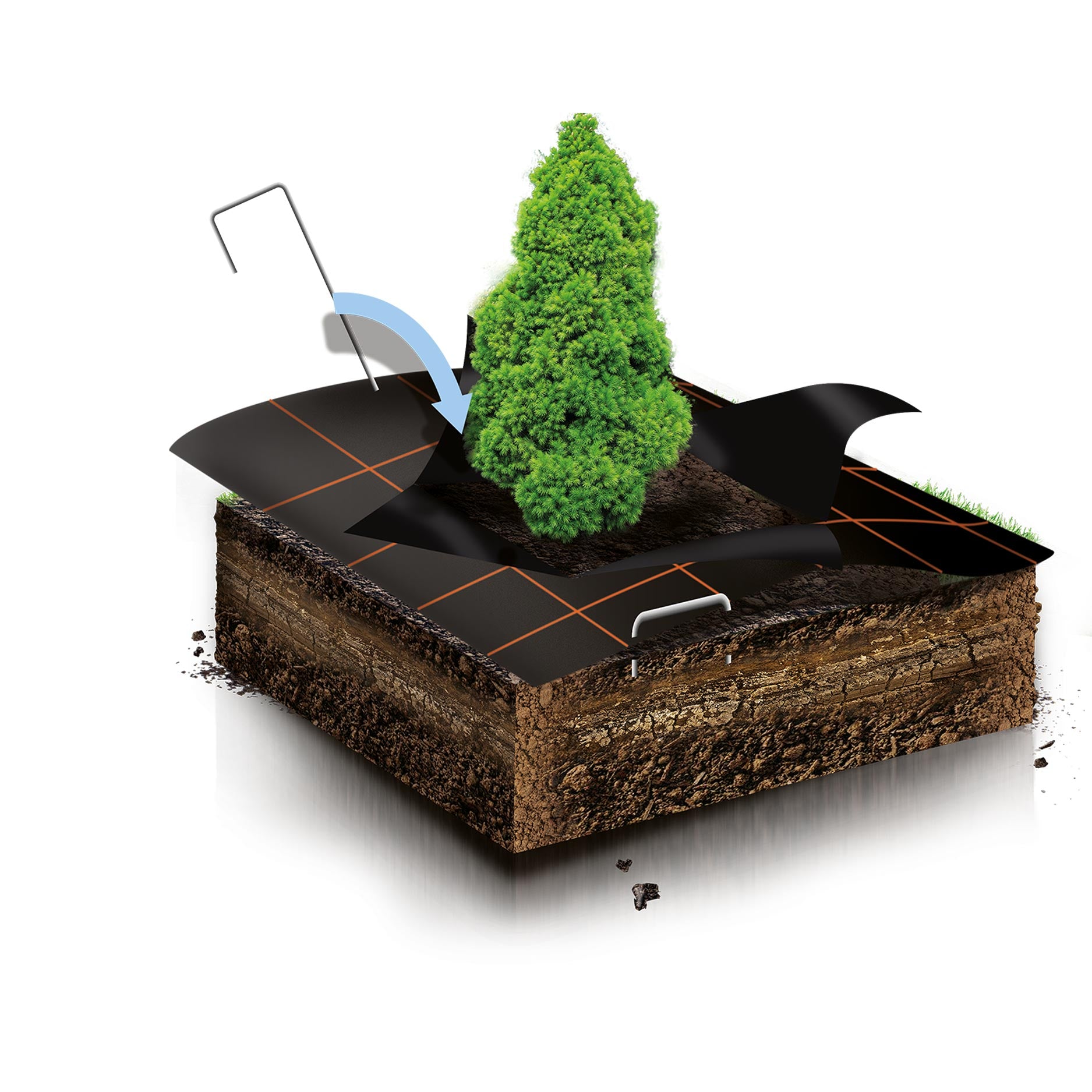 Srotolate il telo su una superficie piana e priva di erbe infestanti e ritagliatelo su misura attorno alle piante o alle aiuole. Si fissa con picchetti da terreno e, se necessario, si copre con pacciamatura o ghiaia. Il telo lascia passare aria e acqua, ma blocca la luce, impedendo alle erbe infestanti di svilupparsi.