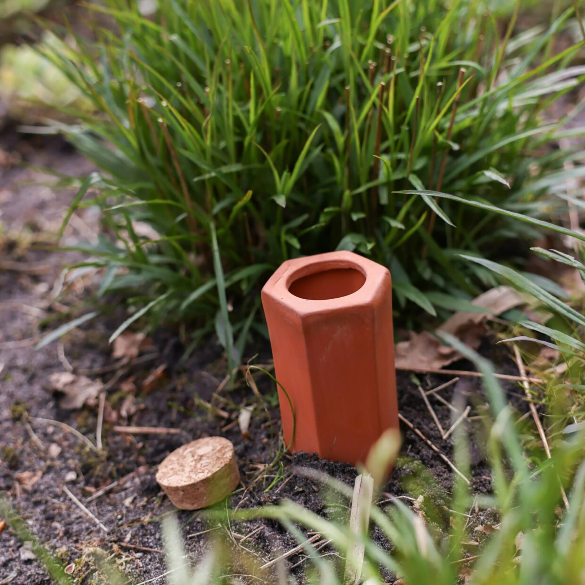 Il beccuccio di irrigazione è realizzato in terracotta non smaltata e viene fornito con un tappo in sughero, così potete chiuderlo facilmente dopo il riempimento. Una soluzione pratica per chi desidera irrigare in modo consapevole ed efficiente.