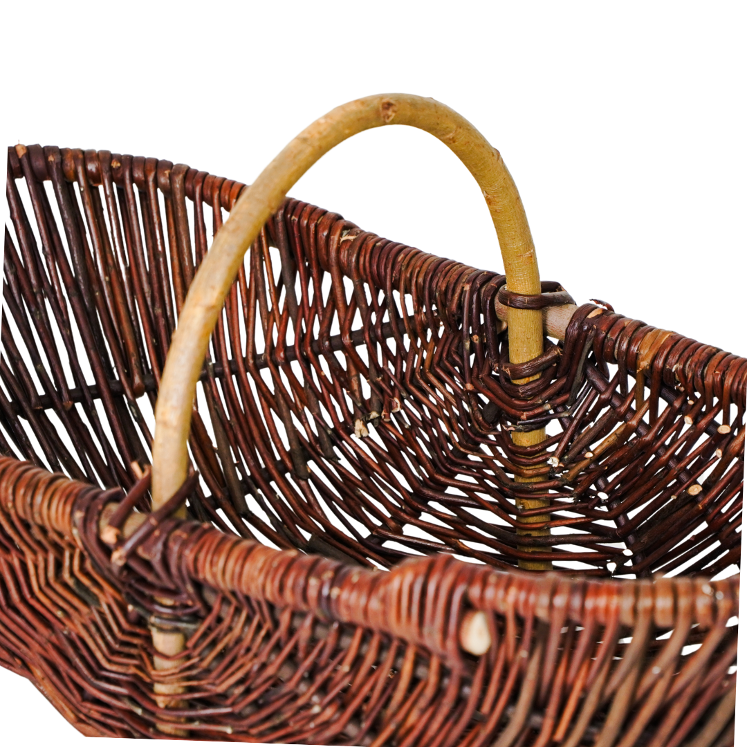 Questa spaziosa cesta da raccolta è intrecciata a mano in vimini naturale e dispone di un manico robusto per un trasporto agevole. Con dimensioni di circa 56 x 30 x 18-32 cm offre spazio a sufficienza per raccogliere verdure, frutta, erbe aromatiche e fiori. La cesta unisce funzionalità a un aspetto country e rustico, perfetto per il giardinaggio all’aperto.