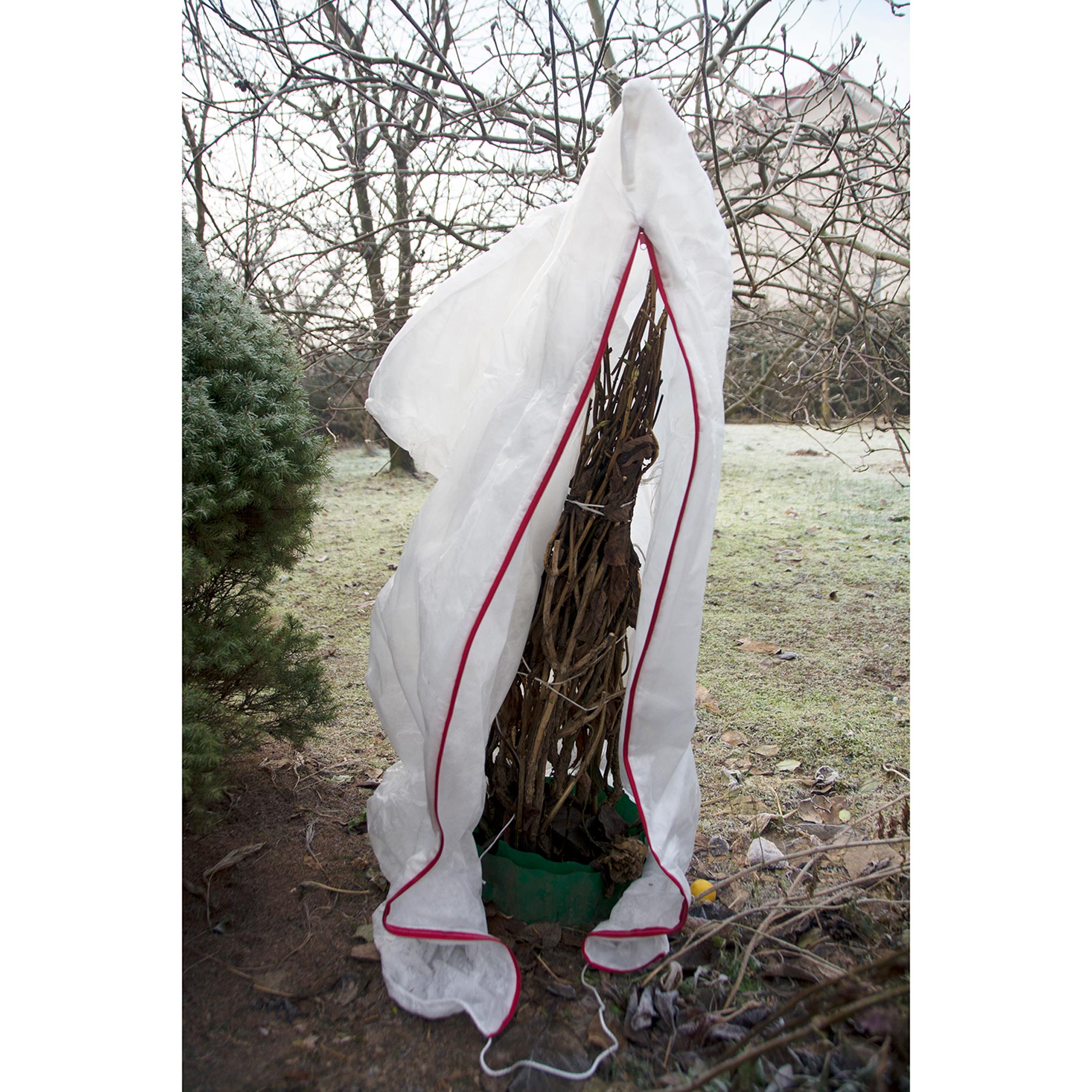 L’uso della Copertura Protettiva Antigelo è semplice: infilate la copertura sulla pianta e stringete il cordino nella parte inferiore per mantenerla in posizione. In questo modo la pianta risulta completamente coperta e protetta dagli agenti atmosferici. La copertura è leggera e traspirante, contribuendo a prevenire la condensa.