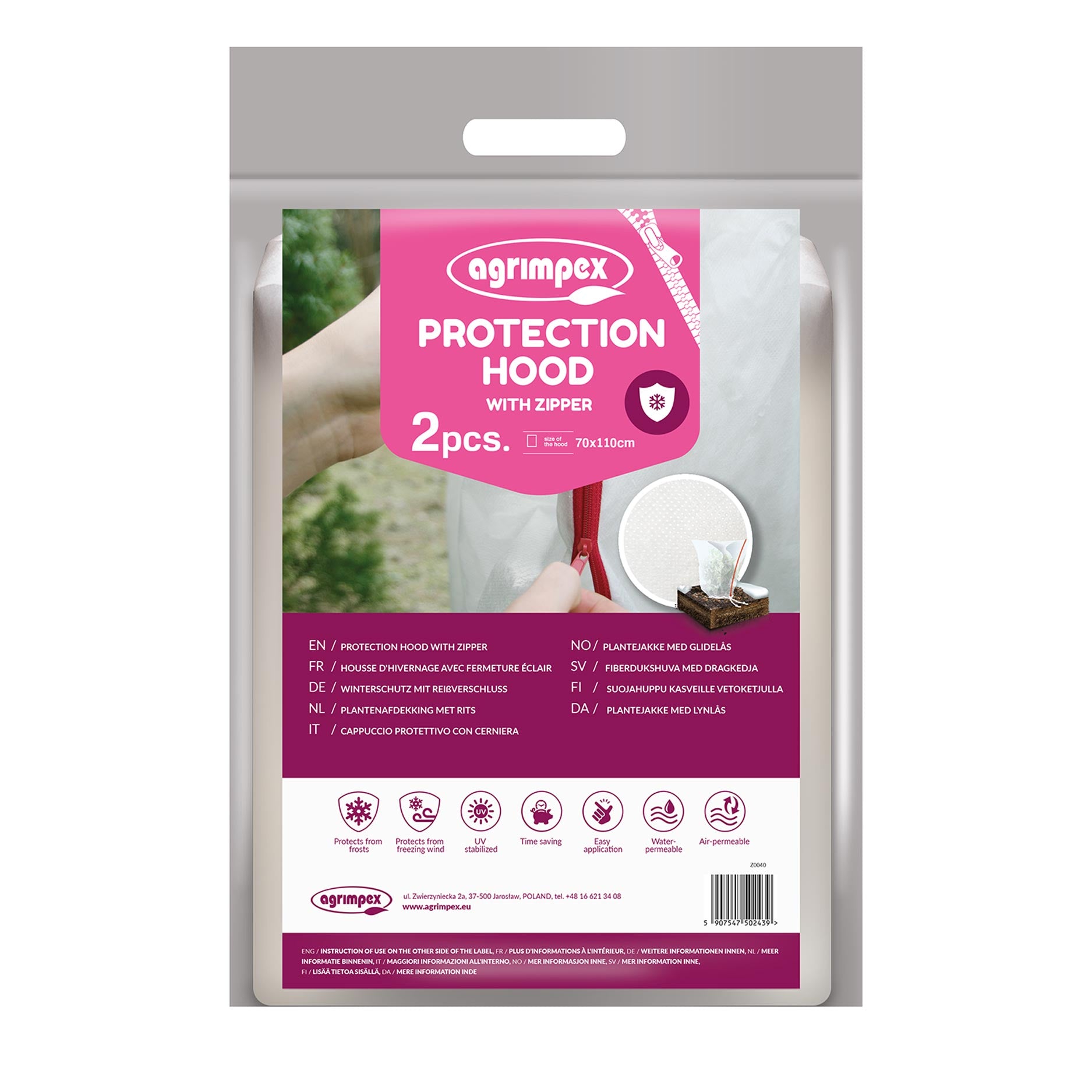 La copertura protettiva con cerniera è realizzata in polipropilene (PP) tessuto, progettato per proteggere le piante da freddo, vento e neve. Con un peso di 50 g/m², il telo offre un isolamento adeguato senza soffocare la pianta. È ideale per coprire arbusti, giovani alberi e piante delicate durante i mesi invernali.