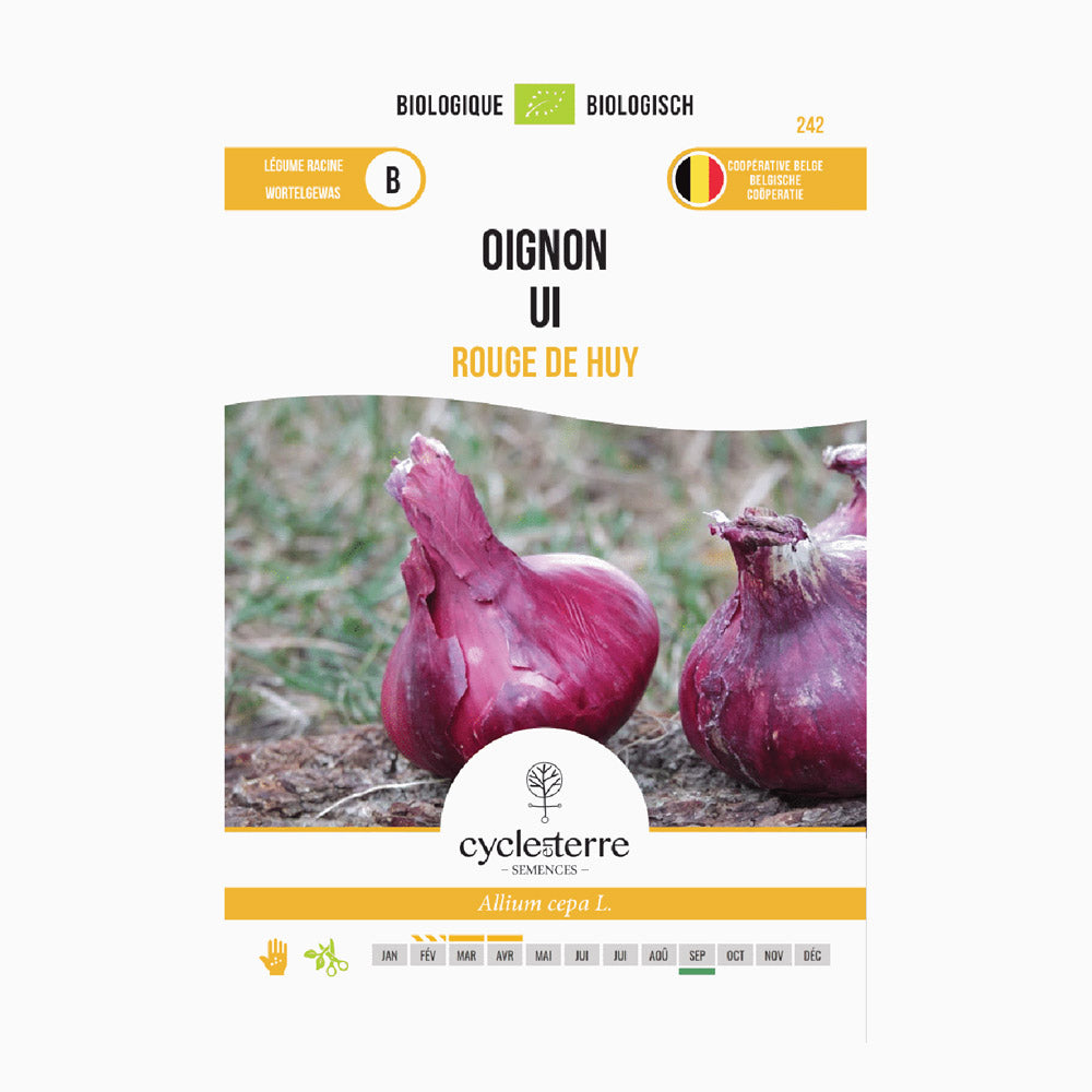 La cipolla rossa 'De Huy' è una varietà regionale nota per il suo caratteristico bulbo rosso leggermente appiattito, che può raggiungere un diametro impressionante fino a 12 cm. Questa cipolla ha un sapore ricco e un’ottima conservabilità, che la rende ideale sia per l’uso fresco sia per una lunga conservazione.