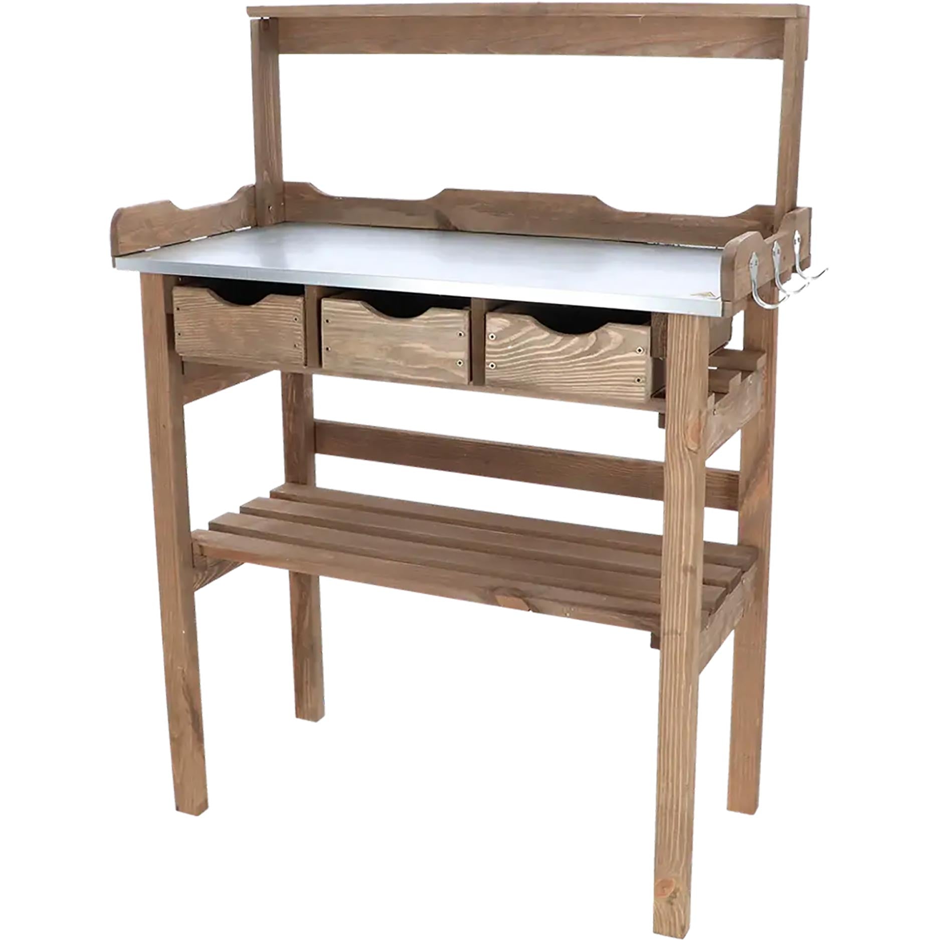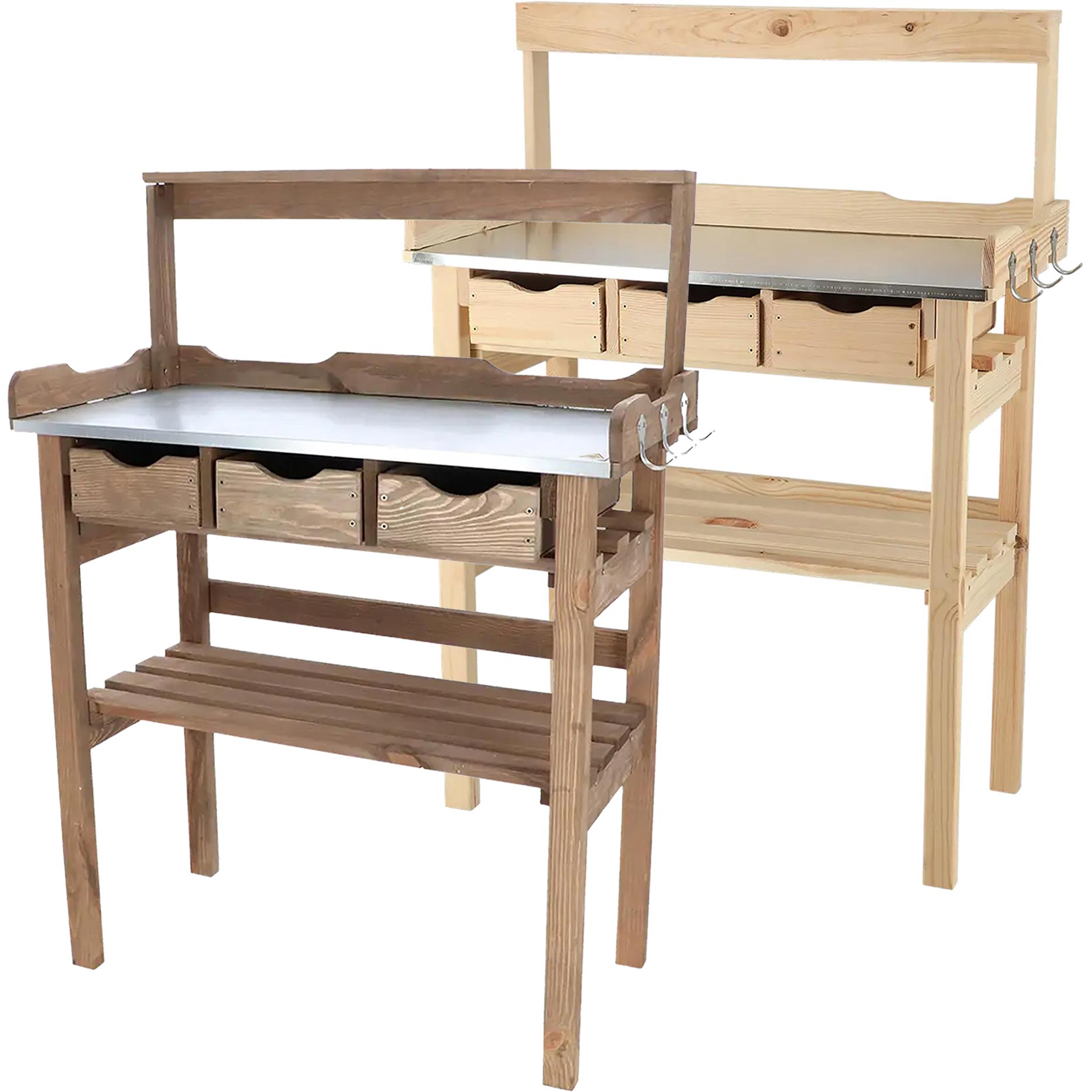 De Esschert oppottafel met opzetstuk is gemaakt voor de fanatieke tuinier die nét wat meer overzicht en werkruimte wil. Ideaal voor in de tuin, kas of op het terras, waar je een vaste plek creëert om te zaaien, verspenen en verpotten. Dankzij het opzetstuk en de slimme indeling werk je niet alleen comfortabel op hoogte, maar heb je ook direct overzicht over al je materialen en stekjes.